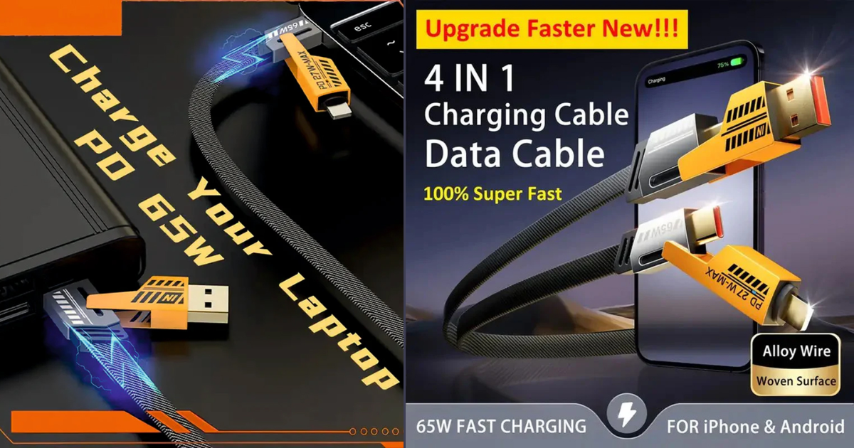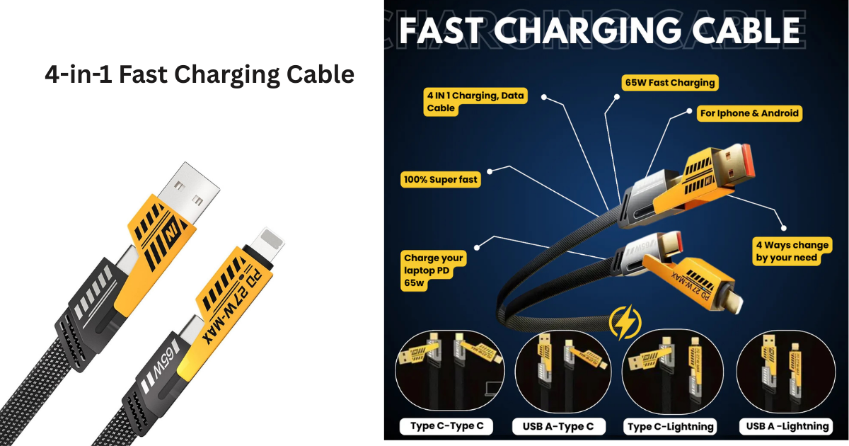 The 4 in 1 Fast Charging Cable offered by Creckk is built for people who hate clutter but still want speed. With USB A and USB C input and Lightning plus Type C output, it replaces three separate cables without compromising performance.