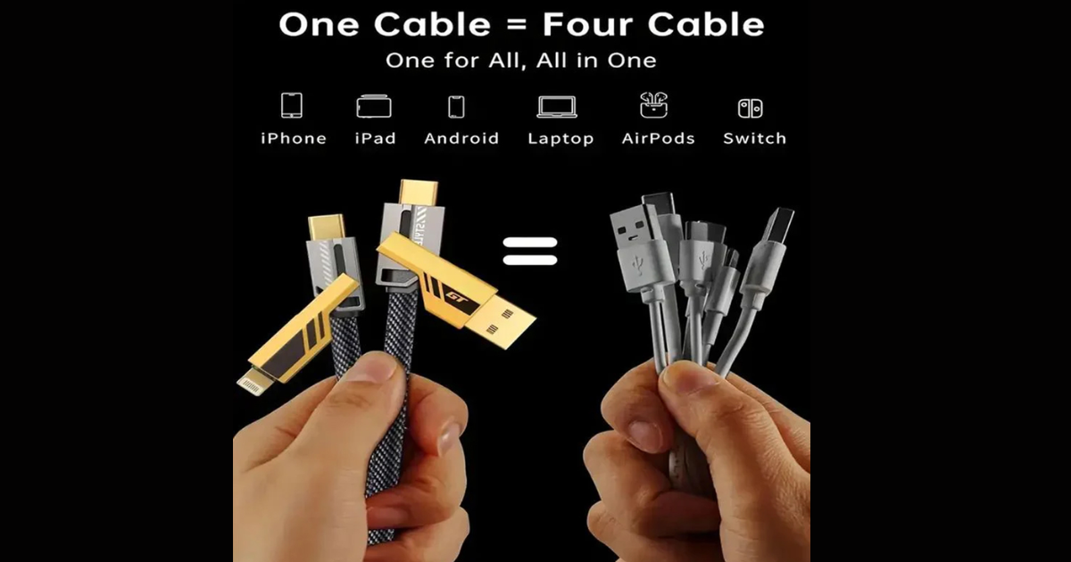 4 in 1 Fast Charging Cable Designed for Modern Car and Desk Use
