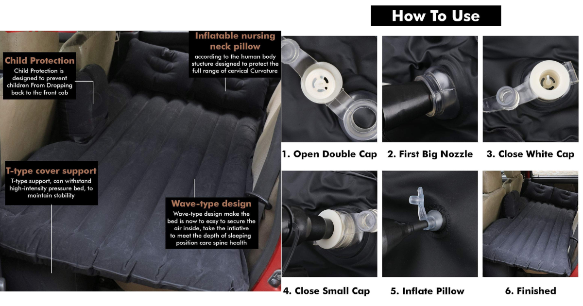 The Inflatable Car Bed is designed to fit your backseat space perfectly. Within 2 minutes, you can inflate it using a pump and convert your car into a resting zone.