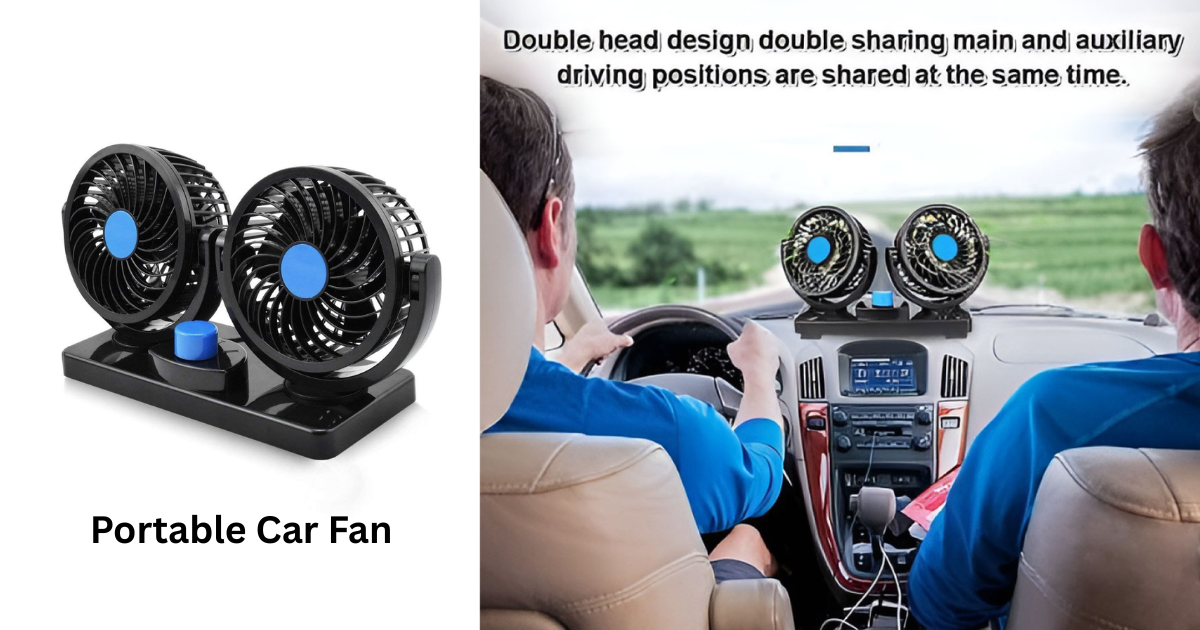 AC is not always enough, especially in traffic. A Portable Car Fan adds direct airflow where needed. This dual-head fan rotates 360 degrees and comes with two speed settings. It is quiet, energy-efficient, and easy to install.